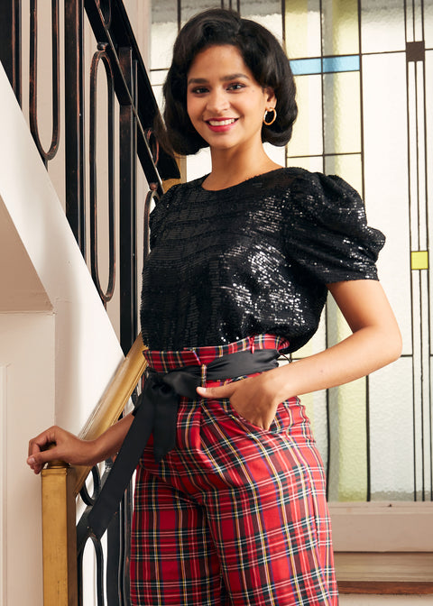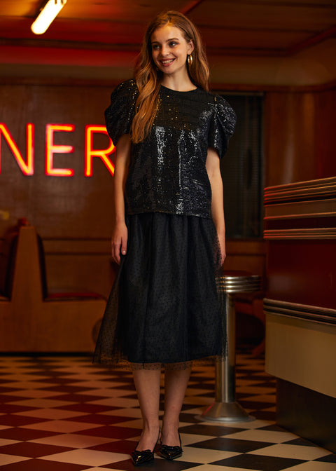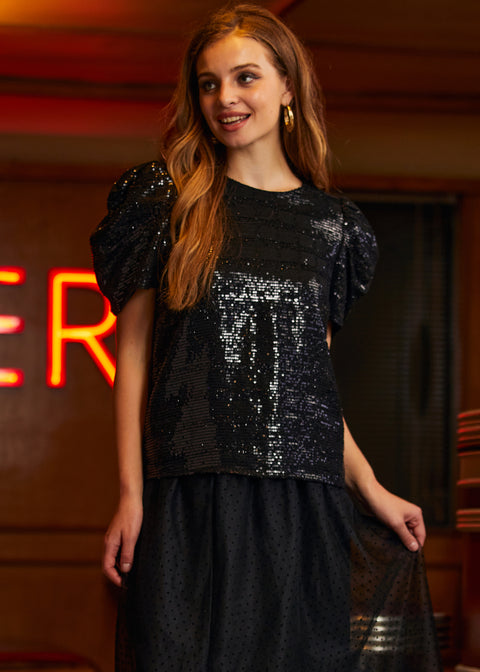 Fira säsongen med stil med Festive Frolic Bubble Sleeve Crew från vårt namngivna märke ModCloth. Dess djupa midnattssvarta nyans och djärva bubbelärmar är en hyllning till klassisk elegans och julmystik. Denna topp passar perfekt med både kjolar och byxor och erbjuder ett mångsidigt plagg som är lika delar mysigt och sofistikerat. Oavsett om du ska på en glamorös julfest eller njuter av lugna vinterkvällar, är det ett plagg som förkroppsligar säsongens magiska essens.