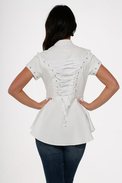 En fräsch och modern high-low-topp i vitt med en smickrande silhuett och praktiska sidofickor. Med bekväm stretch och dragkedja mitt fram passar detta mångsidiga plagg enkelt med byxor, kjolar eller jeans för en avslappnad eller uppklädd look.