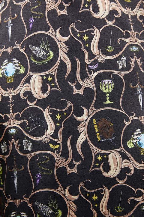 Den ceremoniella satinmidikjolen från Dangerfield har ett slående ”ceremoniellt” tryck som ger en touch av elegans till din ensemble. Denna kjol är designad med en spetskant i midjan, vilket erbjuder en delikat och feminin detalj som förstärker dess övergripande utseende.