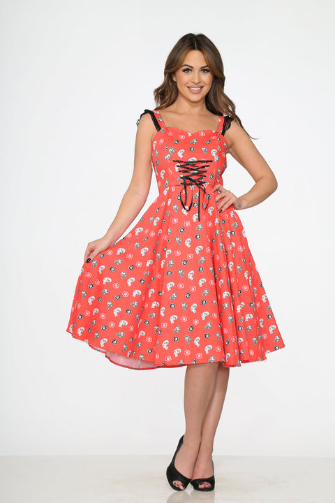 Röd Dödskallar Swingklänning