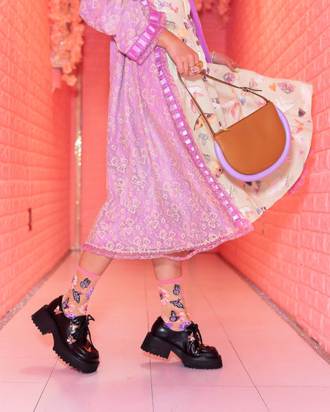 Disco Barbie Svart Skir Strumpa med Rund Hals