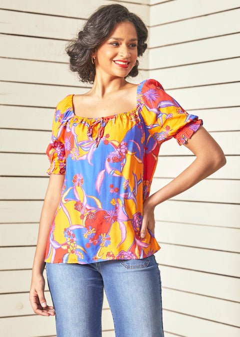 In All My Vibrance Bondblus i Bali Blommigt Mönster (Slutrea)