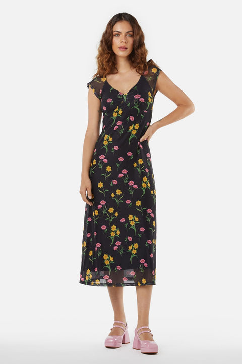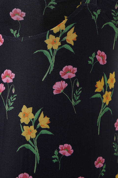 Träd tillbaka till 90-talet med en trendig twist i Floral Mesh-klänningen från Princess Highway, där nostalgi blomstrar på nytt bland påskliljor och nejlikor. Den här klänningen är en poetisk hyllning till årtiondet, med en empirelinjeformad överdel som elegant definierar midjan innan den faller över i en halvt åtsittande kjol. Korta ärmar böljar över axlarna och ger en touch av fantasi och frihet. Den V-formade halsringningen erbjuder en duk för både blygsamhet och lockelse, och inbjuder till en lekfull titt på vad som finns under. Tillverkad av en polyester-elastanblandning, förenar den här klänningen komfort med hållbarhet, vilket säkerställer att din retro-look står sig genom tiderna. Svart är det en mångsidig bakgrund som får blommönstret att framträda, perfekt för kaffedejter, avslappnade promenader genom staden eller de kvällar då du känner för att lyssna på livepoesi eller musik i ett mysigt hörn av staden.