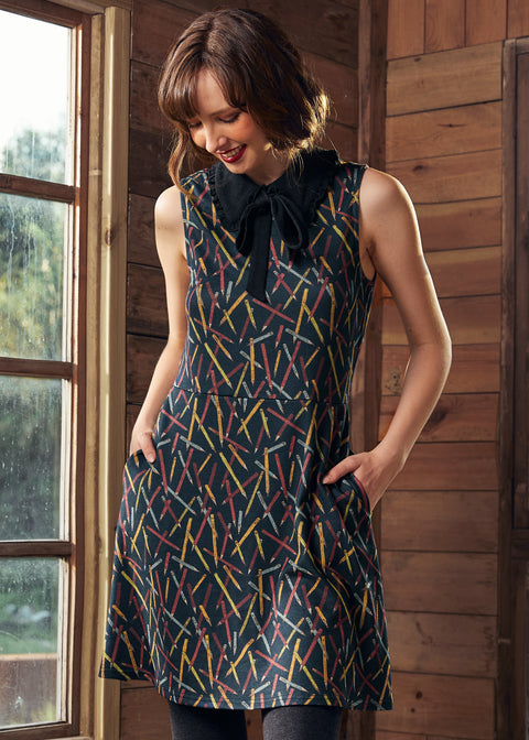 Låt din stil sätta sin prägel i Penmanship Perfection Dress från vårt namngivna märke ModCloth. Med det fantasifulla Write On-trycket är denna ärmlösa A-linjeformade klänning lika delar kvick som bärbar. Det mjuka tyget faller perfekt, medan den kontrasterande rosettkragen ger en polerad finish till din kreativa stil. Bonuspoäng: fickor som är redo att förvara dina pennor – eller bara din telefon. Oavsett om du skissar, klottrar eller bara sticker ut, är den här klänningen ett bevis på att mode och smart ordspel går hand i hand.