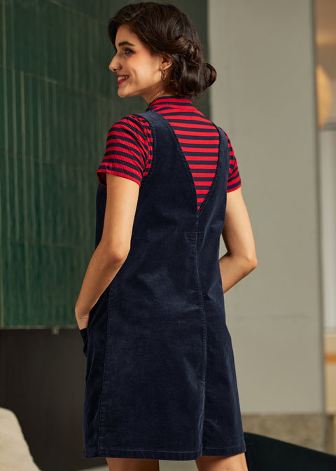 Retro Radiance V-ringade klänningen från vårt namngivna märke ModCloth, i en sofistikerad midnattsblå färg, är din biljett till tidlös stil i vinter. Det vävda mekaniska stretchtyget garanterar en smickrande passform, medan den gerade designen ger en touch av vintage-elegans. Perfekt för fester eller en romantisk utekväll, den här klänningen passar sömlöst med strumpbyxor och glittrande klackar – ett eteriskt val för den nyckfulla i hjärtat.