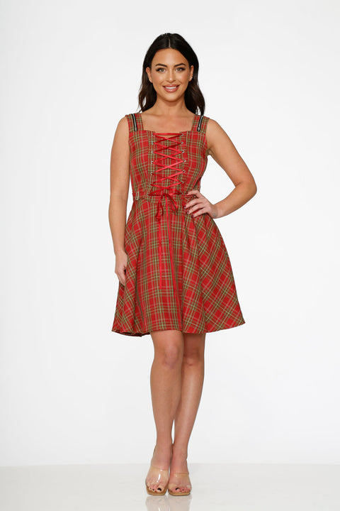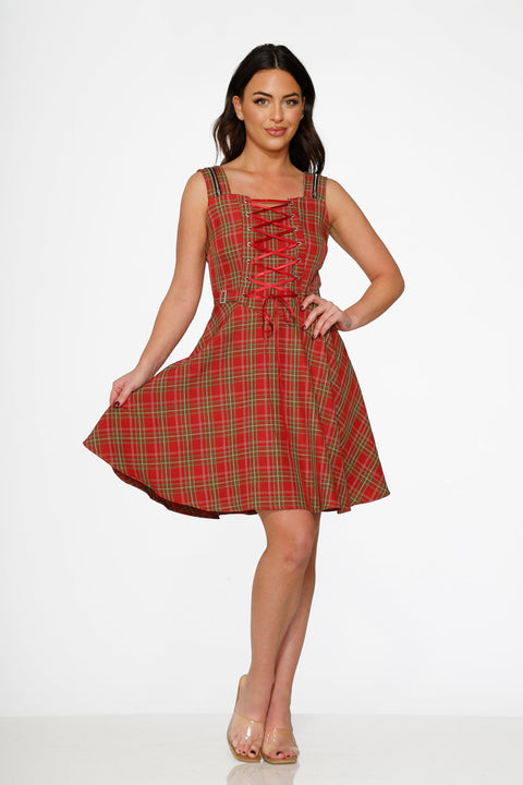 Ge din rutiga klänning en lekfull twist i Orchid Bloom Red Plaid Corset Swing Dress! Med sin snörningskorsett framtill, fyrkantiga halsringning och fylliga, volangliknande kjol, utstrålar denna klänning vintagecharm med en punkrock-blink. Bomullsblandningen håller den bekväm för heldagsäventyr – oavsett om du ska till en höstfestival eller bara känner dig extra fantastisk på en tisdag.