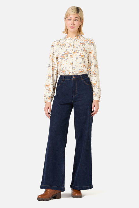 Lägg till en touch av skogskänsla i din garderob med den långärmade blusen Meadow Deer från Princess Highway. Denna krämfärgade blus är tryckt med ett mysigt vintermotiv av söta hjortar inbäddade bland ängsprästkragar och är tillverkad av slät viskos för ett mjukt, böljande fall. Den har en rundad krage, knäppning framtill och muddar i ärmarna, vilket gör den till ett charmigt plagg som är perfekt att bära på lager eller som det är.