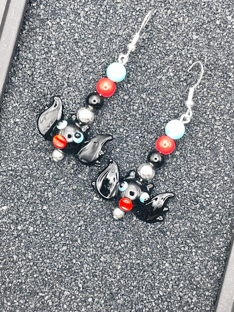 Salem örhängen med glaspärlor och fladdermusmotiv