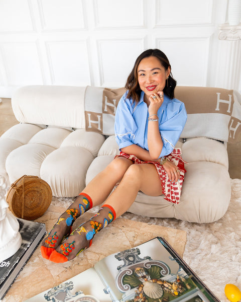 Transportera dig till Italien i vår svarta, genomskinliga strumpa La Dolce Vita, med klassiska inslag av ett italienskt middagsbord, komplett med färsk pasta och fisk, rustika blommor och vintagevinglas. Den perfekta italienska sommaren är inom räckhåll med denna läckra strumpa. Matcha med röda sandaler och en Aperol Spritz.