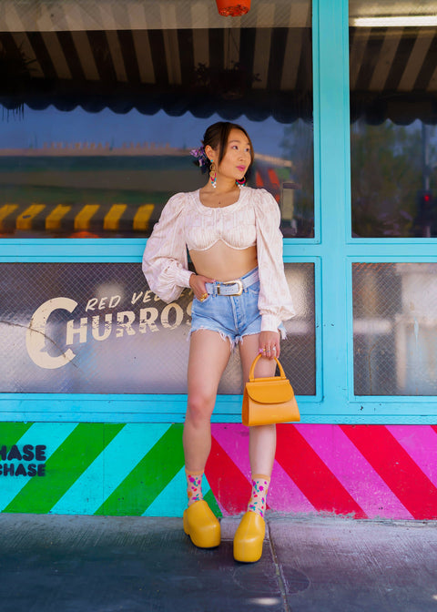 Känn dig som vår året runt i livfulla blommönster i kombination med en djärv klack och en delikat, skir kropp. Denna skira, blommiga strumpa är designad för att bäras med dina säsongsbetonade övergångsskor, som en klackad mule eller en sandal med sluten tå.