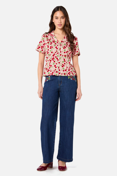 Söt som sommarbär, den kortärmade blusen Raspberry Short Sleeve från Princess Highway anspelar på 90-talets nostalgi med sitt lekfulla tryck och smickrande silhuett. Med saftiga hallon och fina blommor på en mjuk rosa bas är denna halvt åtsittande modell perfekt att kombinera med högmidjade kjolar eller denim för en fräsch, vintageinspirerad look.