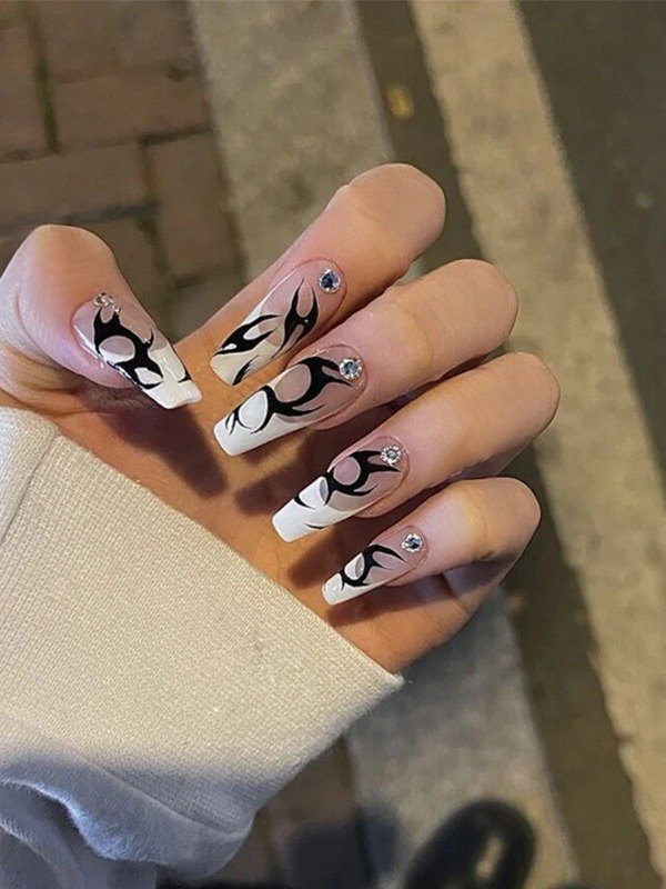 Design: 12 inklusive Größen für eine Set, mit Kunstnägelkleber, Strassdekor