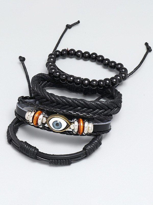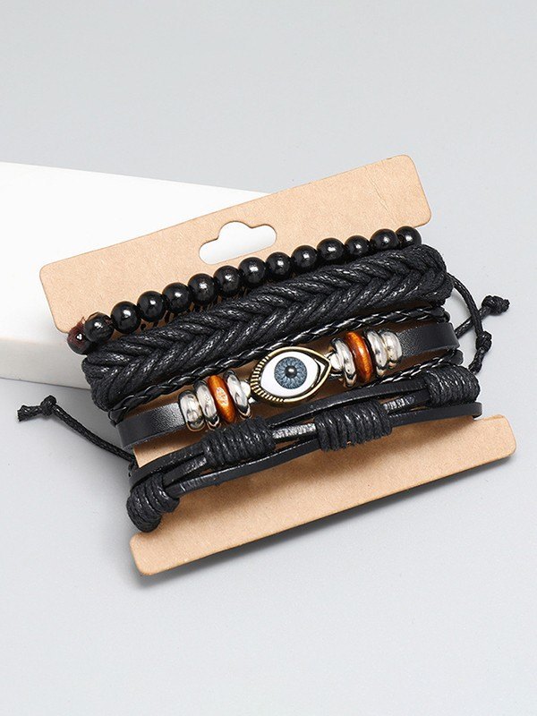 4pcs Boho geflochtenes Pu-Leder-Armband-Set