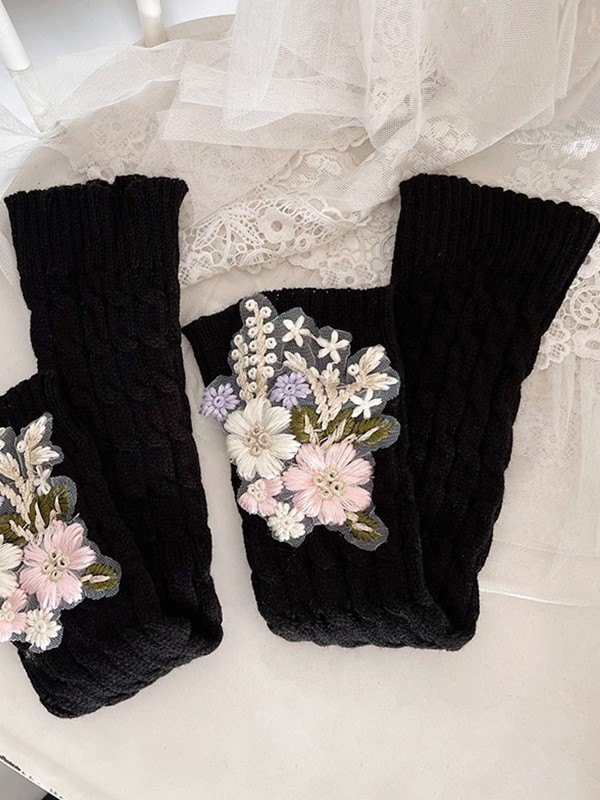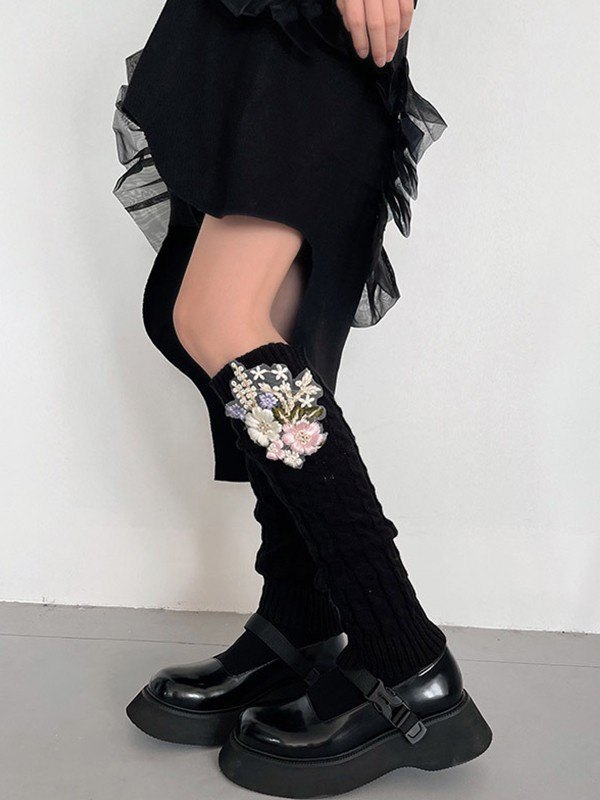 Beinwärmer mit Zopfmuster und Blumenstickerei
