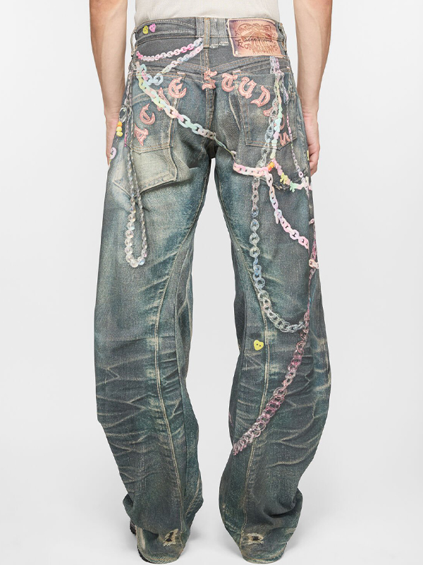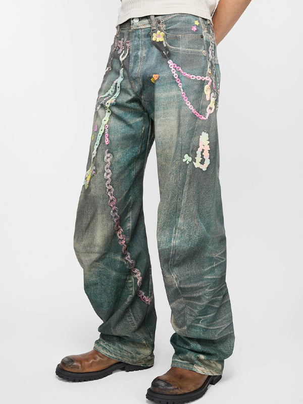 Lockere Jeans für Herren mit Kettenmuster