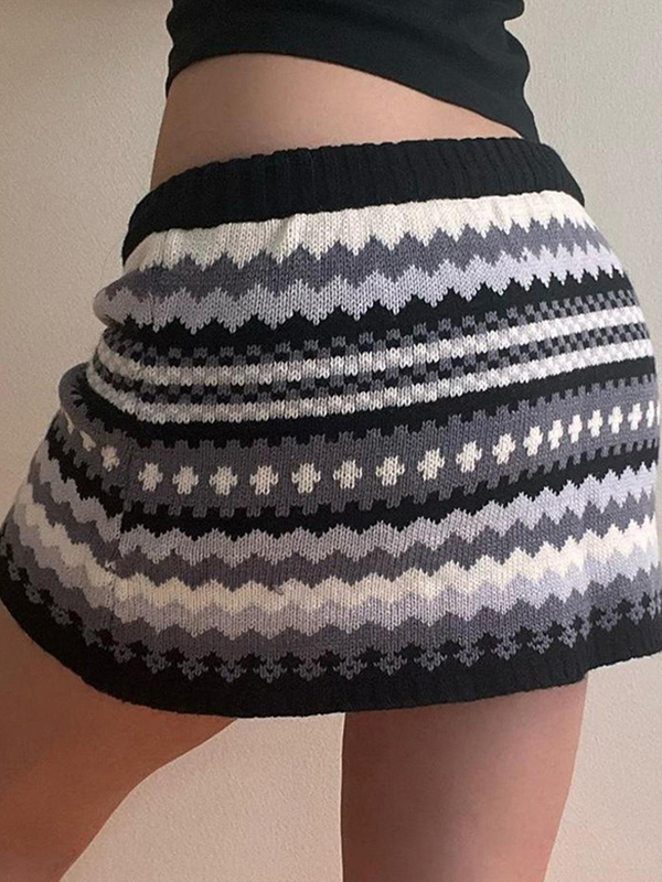 Retro-Miniröcke mit kontrastierenden Streifen und Krawatte