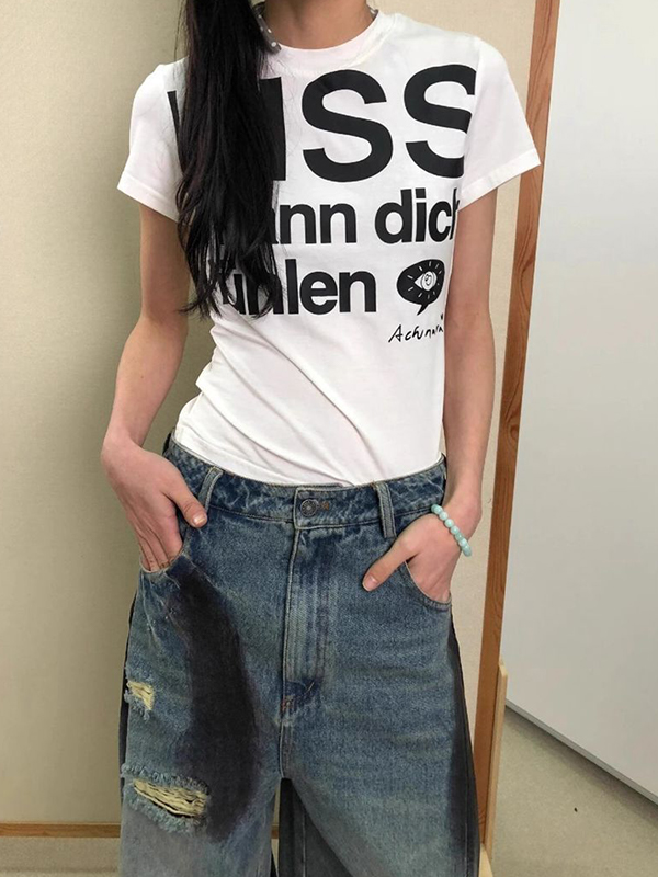 T-Shirt mit kurzen Ärmeln im Retro-Buchstabendruck