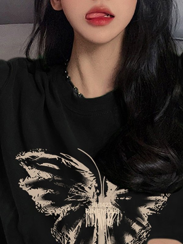 Beschreibung: Diese bedruckten T-Shirts sind unverzichtbar und vielseitig für die Sommersaison. Sie sind aus weichem Baumwollstoff gefertigt, haben einen entspannten Schnitt und eine lange Passform, sind mit einem Schmetterlingsdruck auf der Vorderseite versehen und haben ein Design mit überschnittenen Schultern.