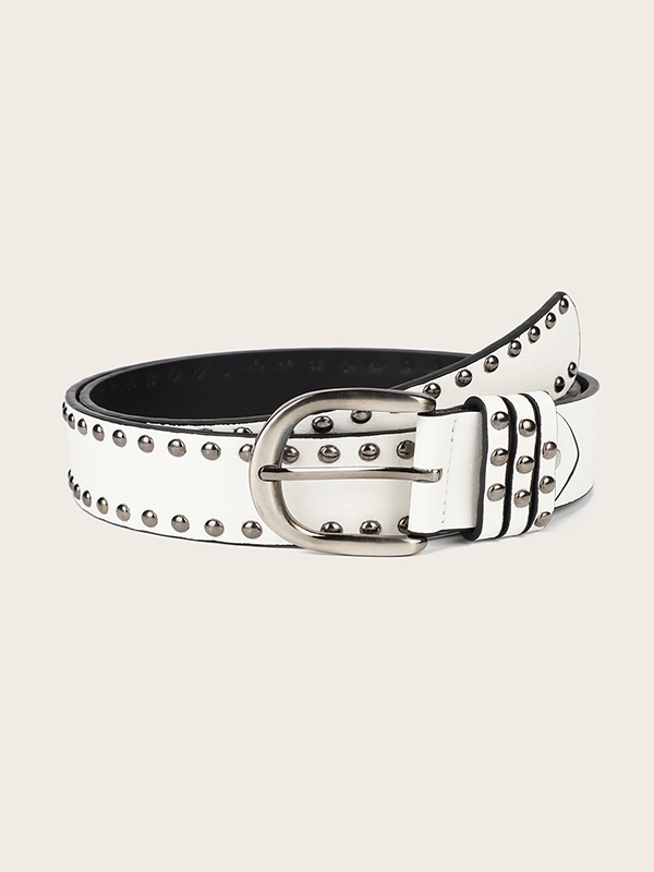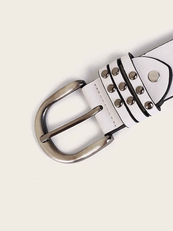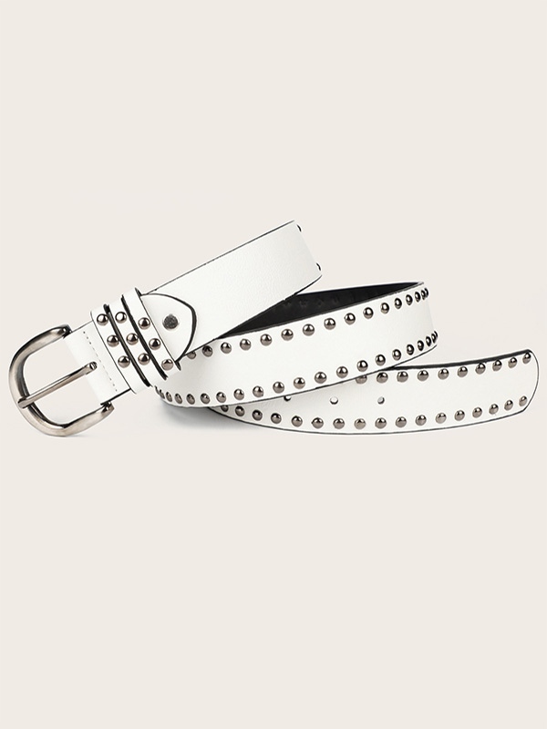 Weißer Punk-Gürtel mit Nietenschnalle