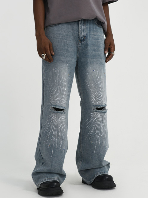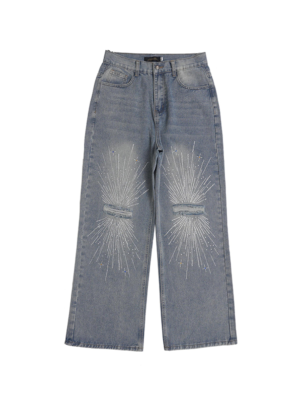 Einzigartiges Design: Diese Jeans verfügen über einen coolen und angesagten Pop-Feuerwerk-Strassdruck , wodurch sie sich von traditionellem Denim abheben.